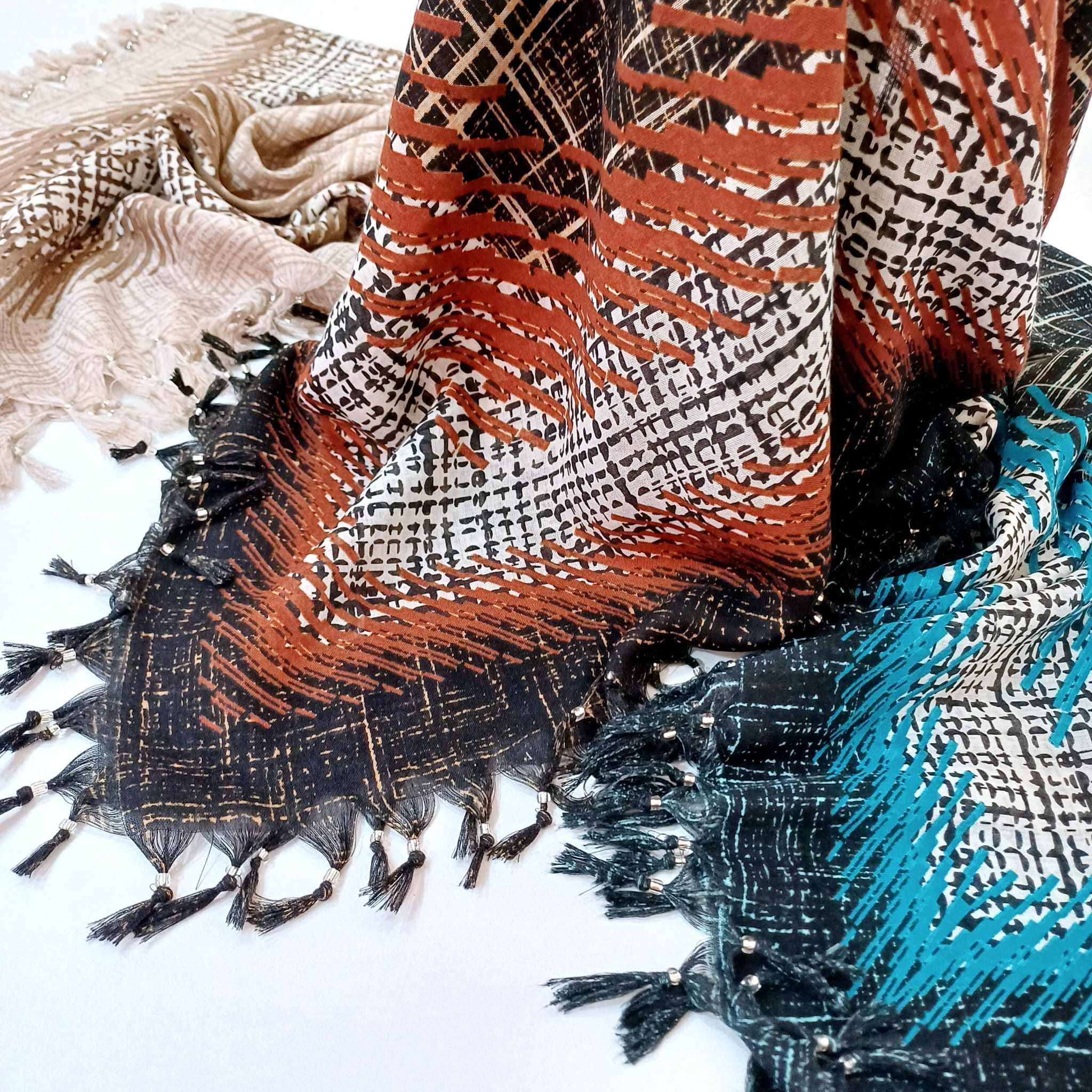 Desenli Sökme Boncuklu Eşarp 2