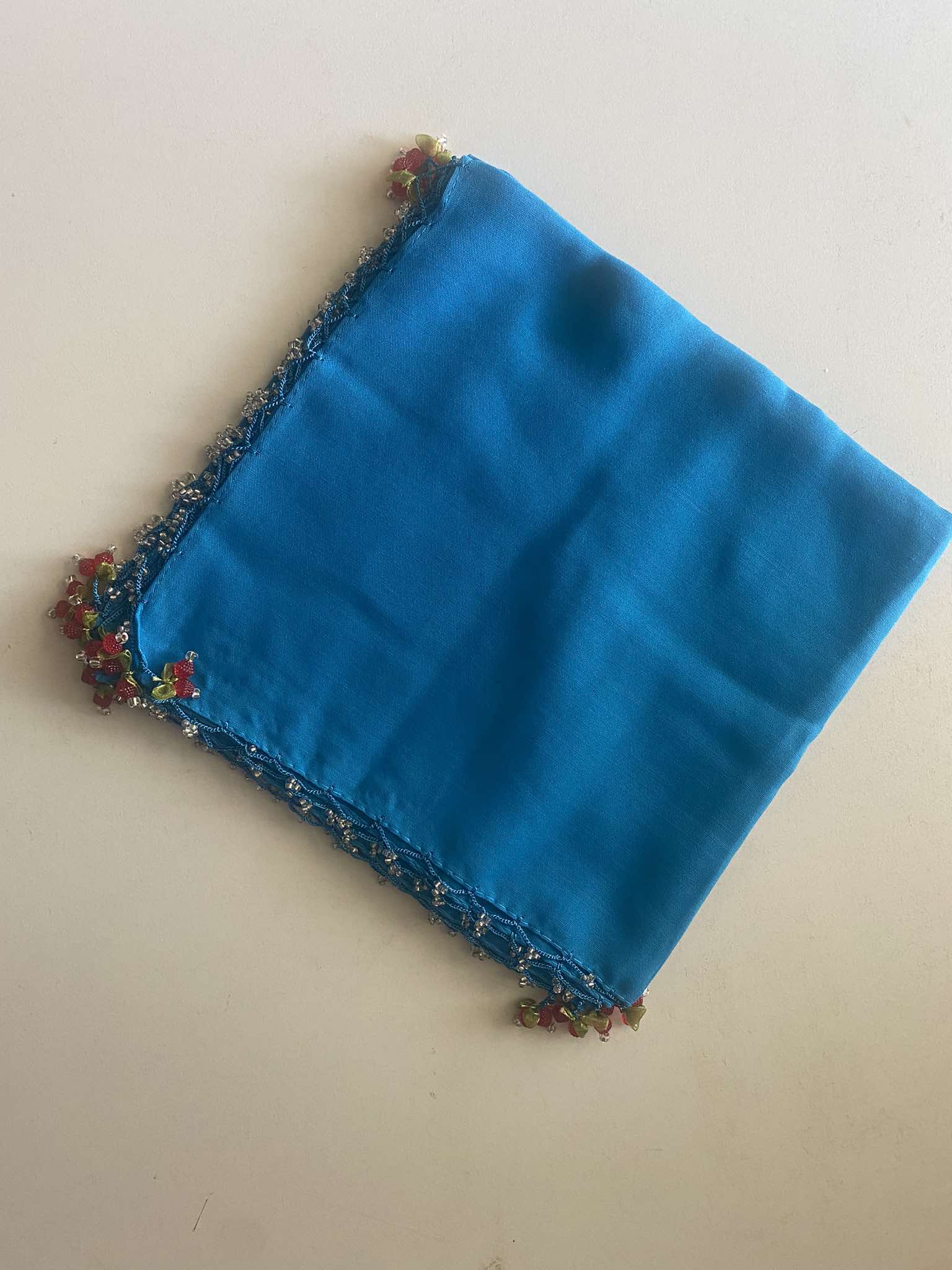 kiraz oyalı boncuklu yazma turkuaz